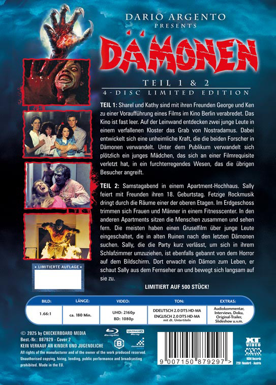 Produktinformationen "DÄMONEN (DEMONS) 1 & 2 Double Feature (4K UHD+Blu-Ray) (4Discs) - Cover 2 - Mediabook (wattiert) Quermotiv - Limited 500 Edition - Uncut"