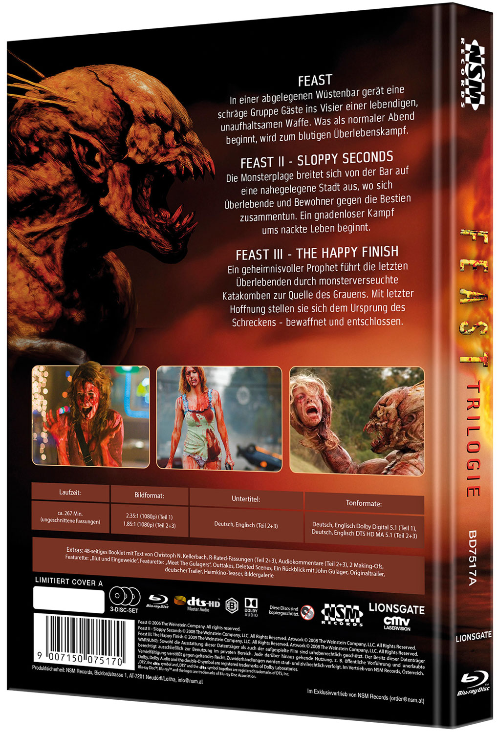 Produktinformationen "FEAST TRILOGIE (Blu-Ray) (3Discs) - Cover A - Mediabook - Limited 444 Edition - Unrated"