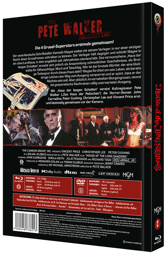 Mit „Haus der langen Schatten“ vereint Kultregisseur Pete Walker („Das Haus der Peitschen“) die Horror-Ikonen John Carradine, Peter Cushing, Christopher Lee und Vincent Price erstund letztmalig gemeinsam vor der Kamera.